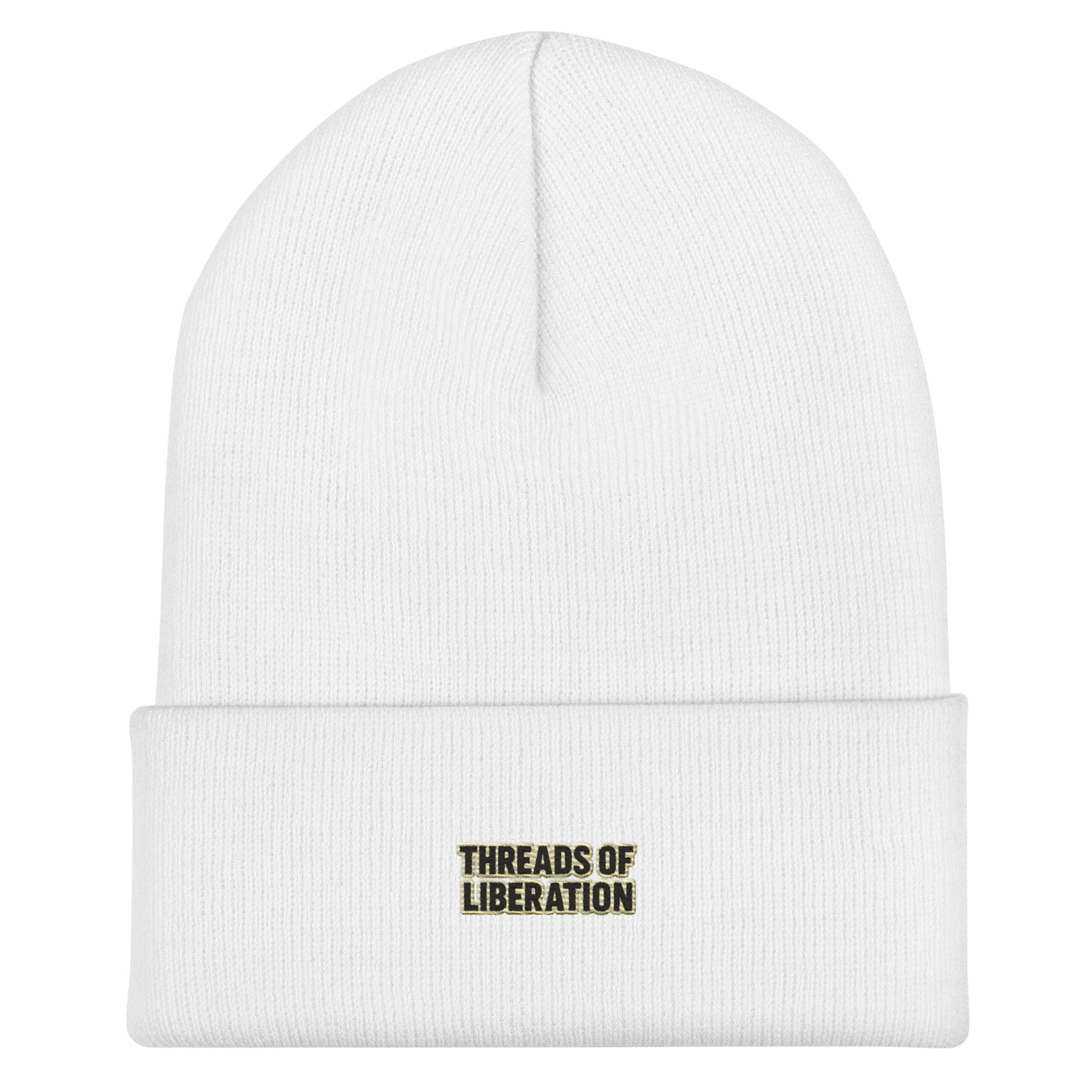This embroidered beanie carries the words THREADS OF LIBERATION across the cuff—a declaration that what we wear is not just fashion, but a continuation of ancestral resistance and resilience. The threads that bind us are stronger than the chains that tried to break us.