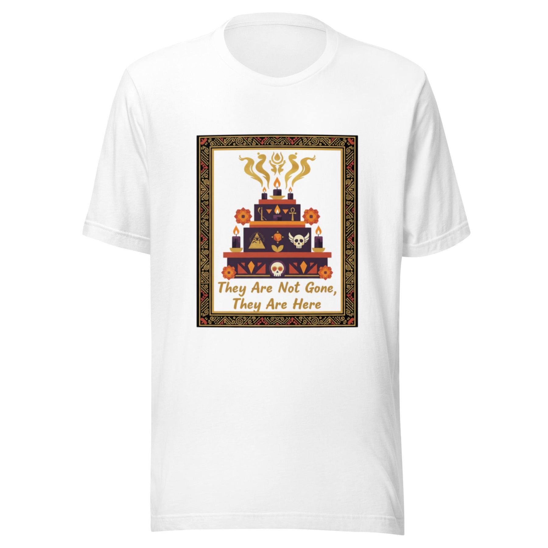 The phrase “They Are Not Gone, They Are Here” is a declaration of spiritual continuity and ancestral presence. It honors the belief that those who came before us are still active participants in our lives, watching over us and blessing our paths.