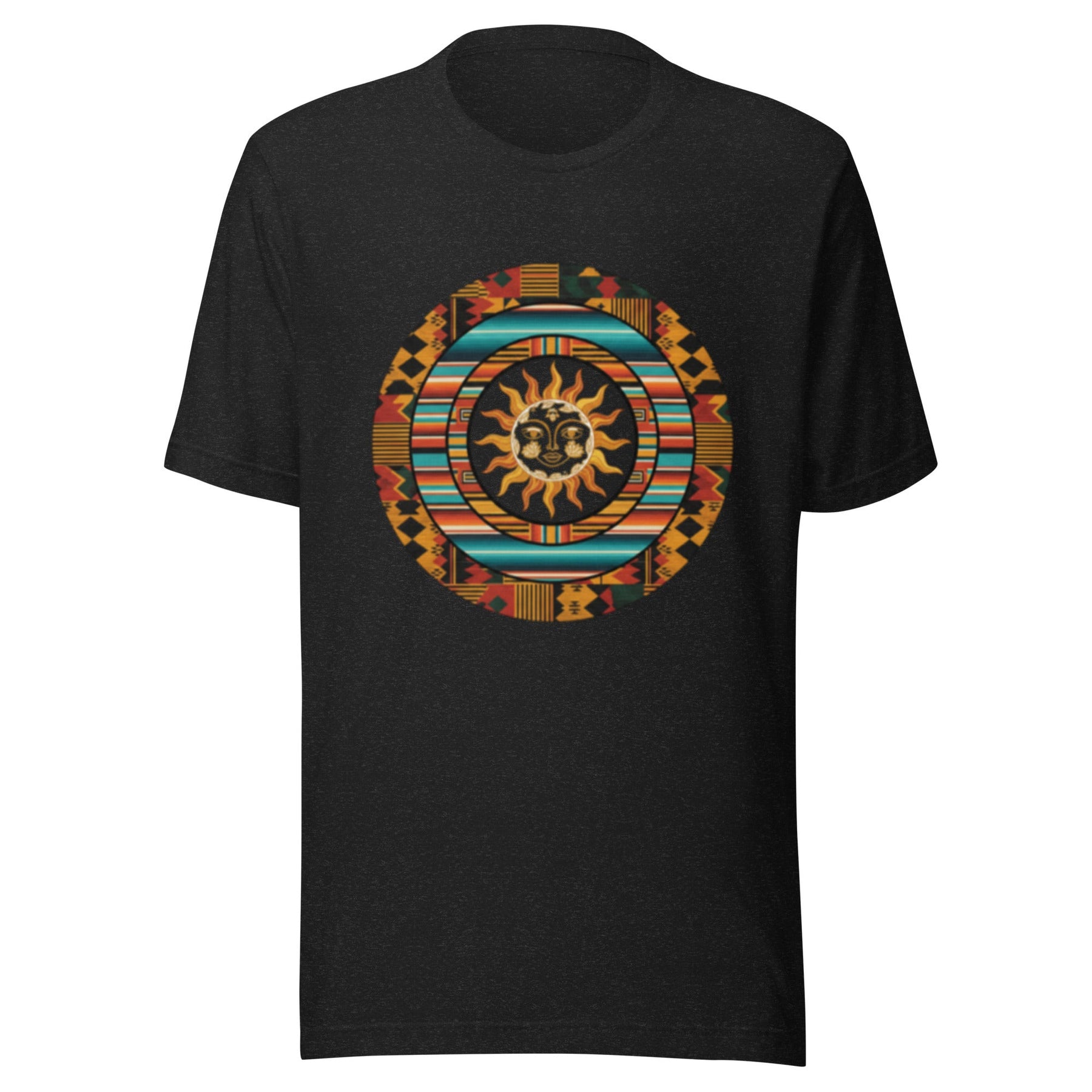 : A stylized sacred heart, a powerful symbol in Mexican folk art, rendered in bold red and gold. The heart is engulfed in flames, and at its center, it contains a fusion of African and Mexican symbols (e.g., an Adinkra symbol and a milagro charm). The phrase “Hecho con Fuego y Alma” (Made with Fire and Soul) is integrated into the desiation. “Hecho con Fuego y Alma” is a declaration of being crafted from powerful, essential elements