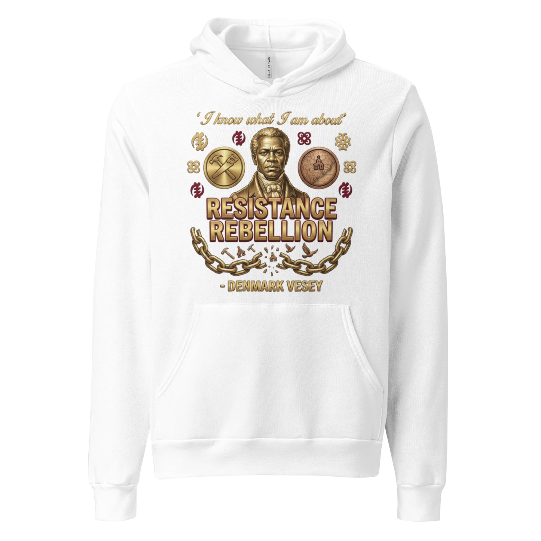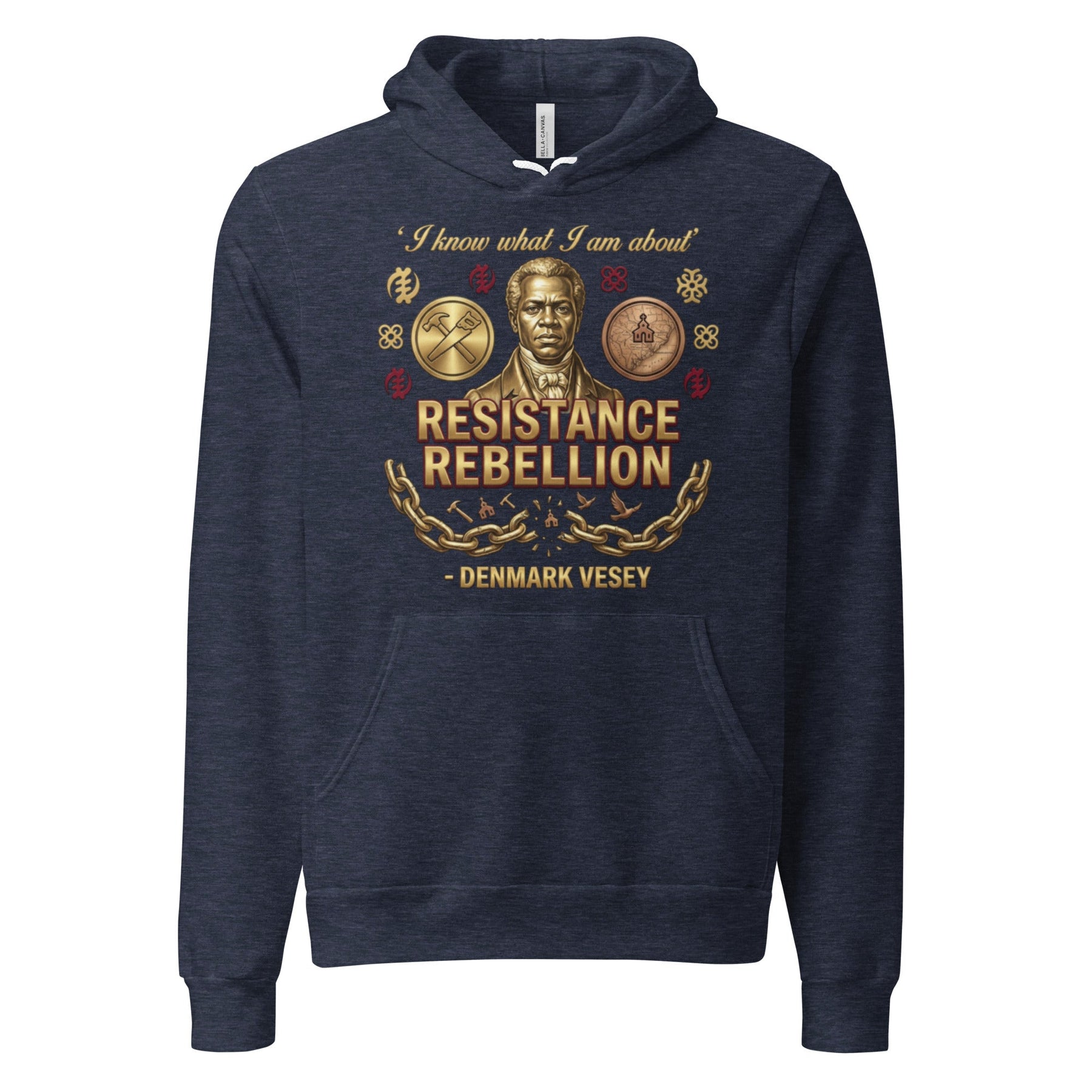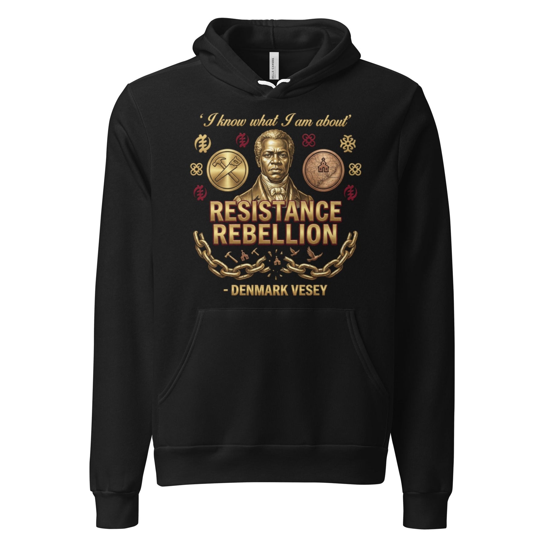 Honor the spirit of organized resistance with this tribute to Denmark Vesey, the free Black man who planned one of the most extensive slave rebellions in American history. Featuring his defiant declaration, "I know what I am about," this design celebrates his meticulous planning and unwavering courage. The carpenter's tools represent his trade, while the AME Church symbol marks the sacred ground where he organized. Wear this as a testament to the fact that the desire for freedom has always been met with strategic, powerful resistance.