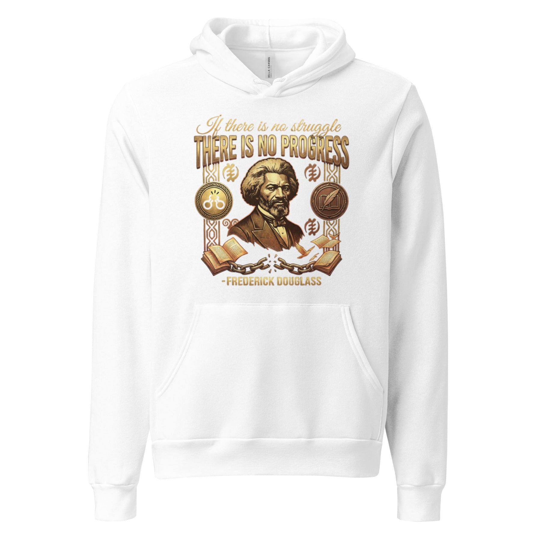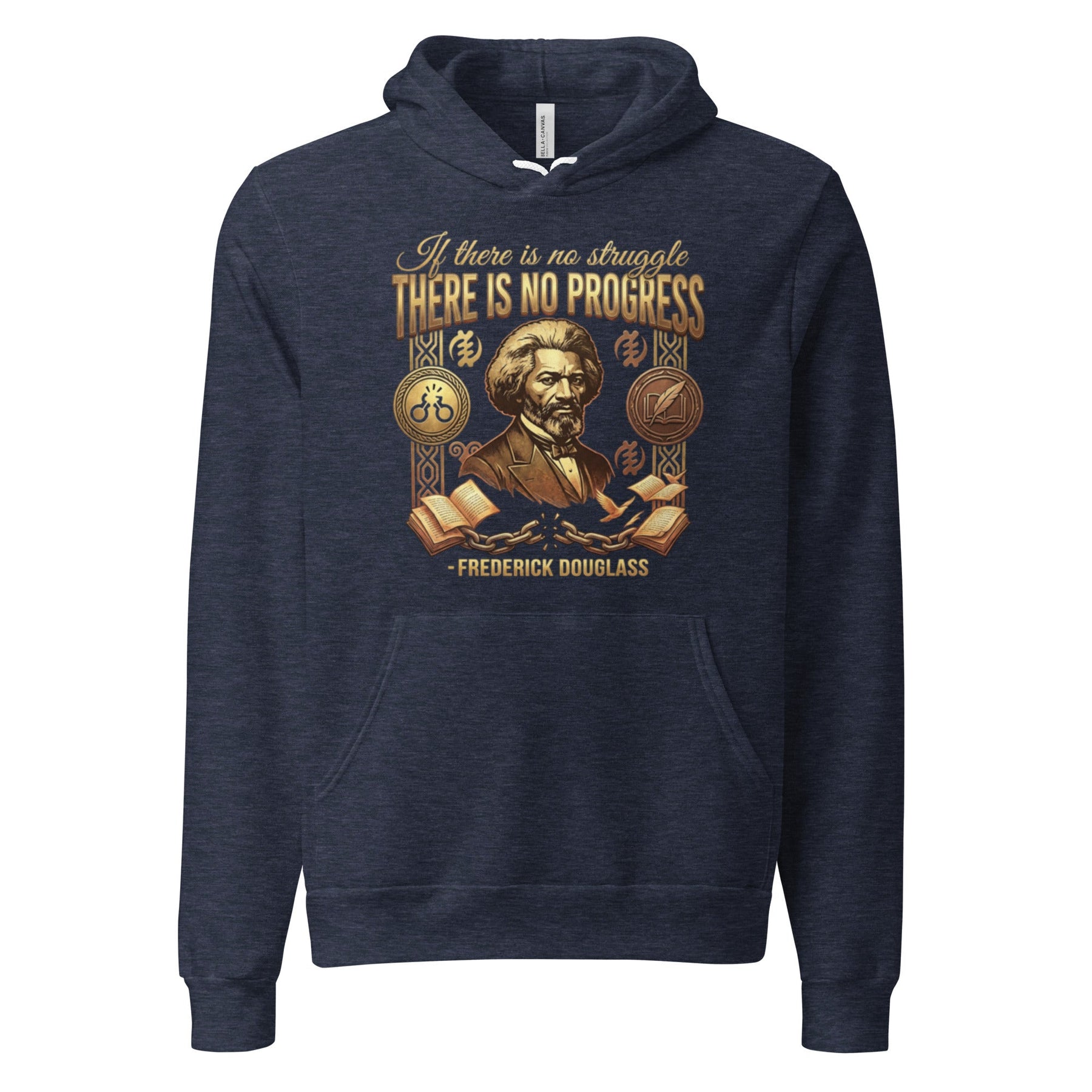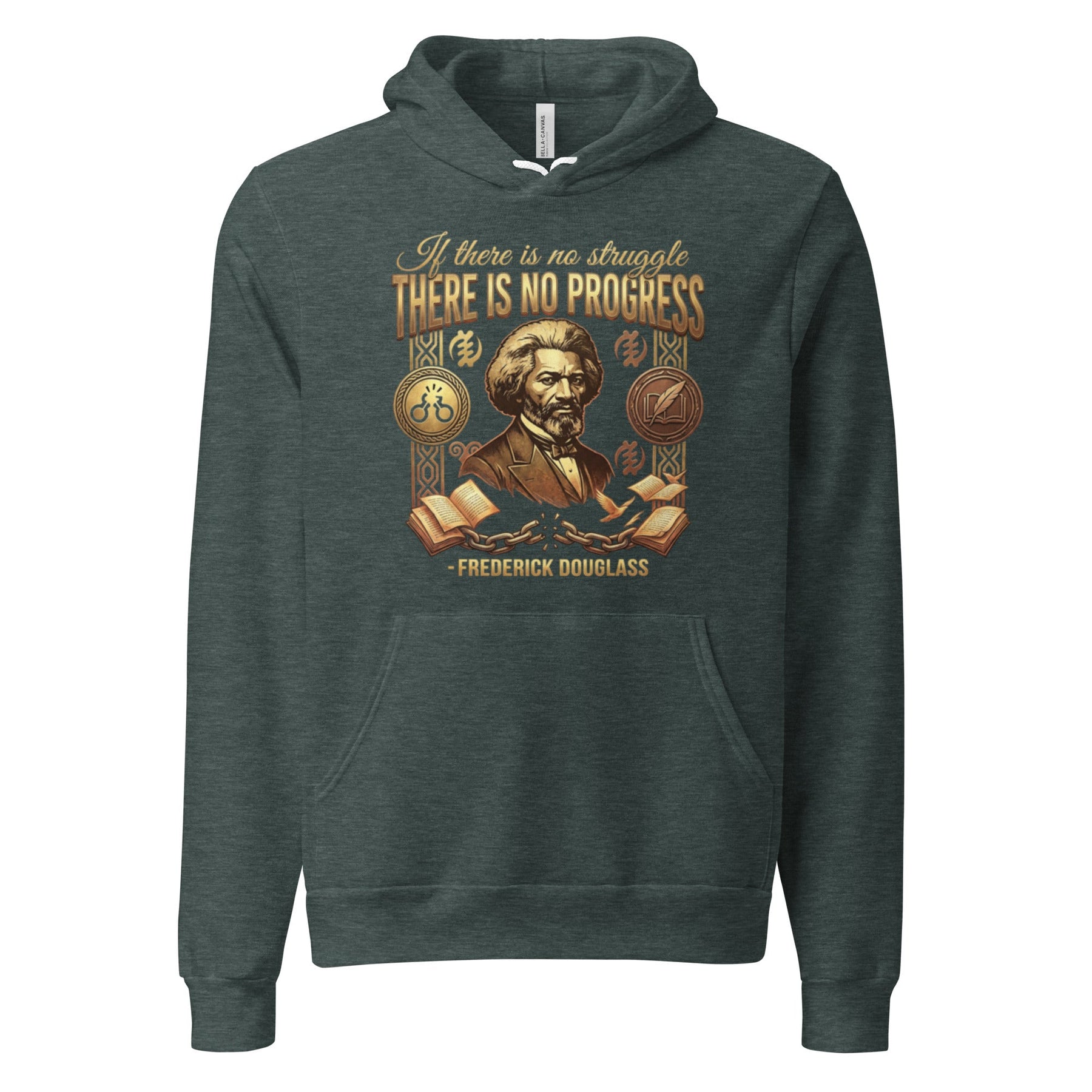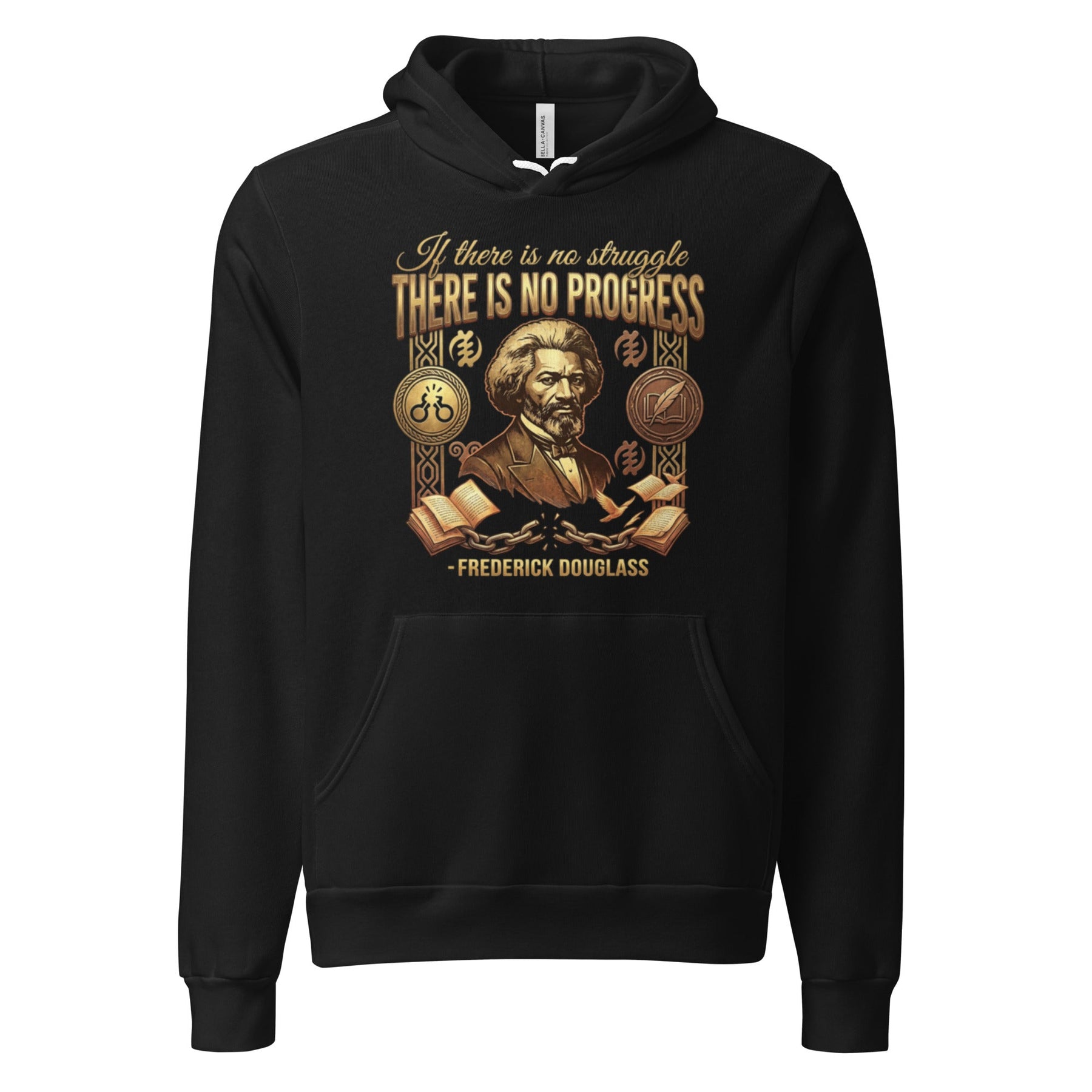 Embrace the profound wisdom of Frederick Douglass, the orator and abolitionist who knew that freedom is not given, but won. Featuring his powerful declaration, "If there is no struggle, there is no progress," this design honors his intellectual fire. The broken shackles, quill pen, and book represent his journey from enslavement to one of the most influential voices of the 19th century. Wear this as a reminder that our progress is forged in the fires of struggle.
