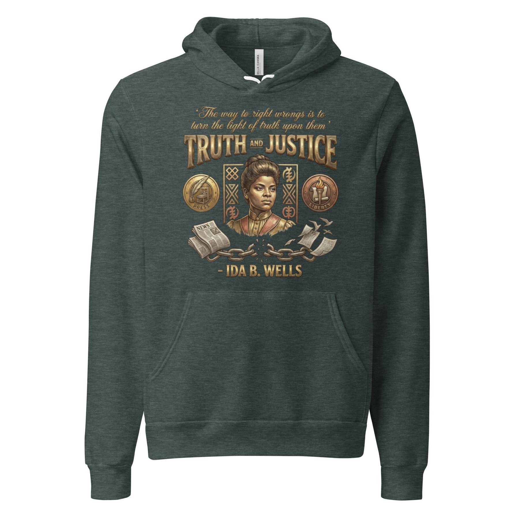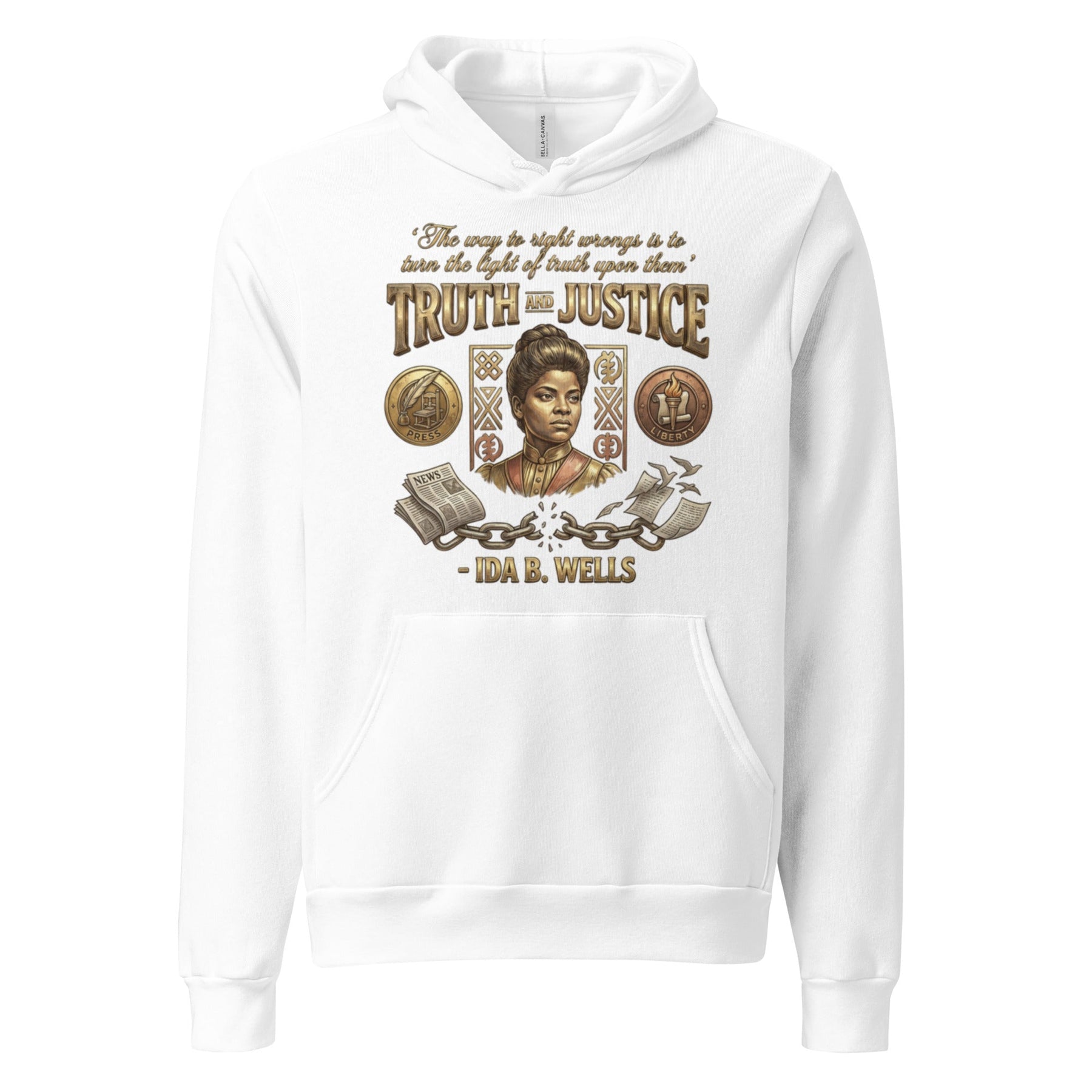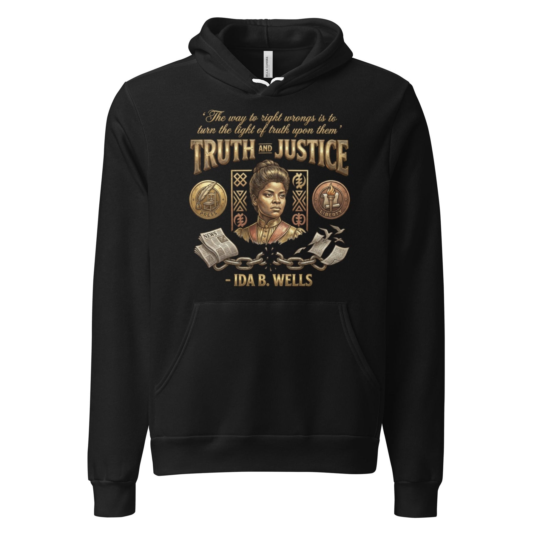 Honor the journalistic courage of Ida B. Wells, the anti-lynching crusader who wielded truth as her weapon. Featuring her belief that "The way to right wrongs is to turn the light of truth upon them," this design celebrates her fearless investigative spirit. The press and the torch of truth symbolize her life's work, while broken chains transform into newspapers flying free. Wear this as a tribute to the power of a free press and the relentless pursuit of justice.