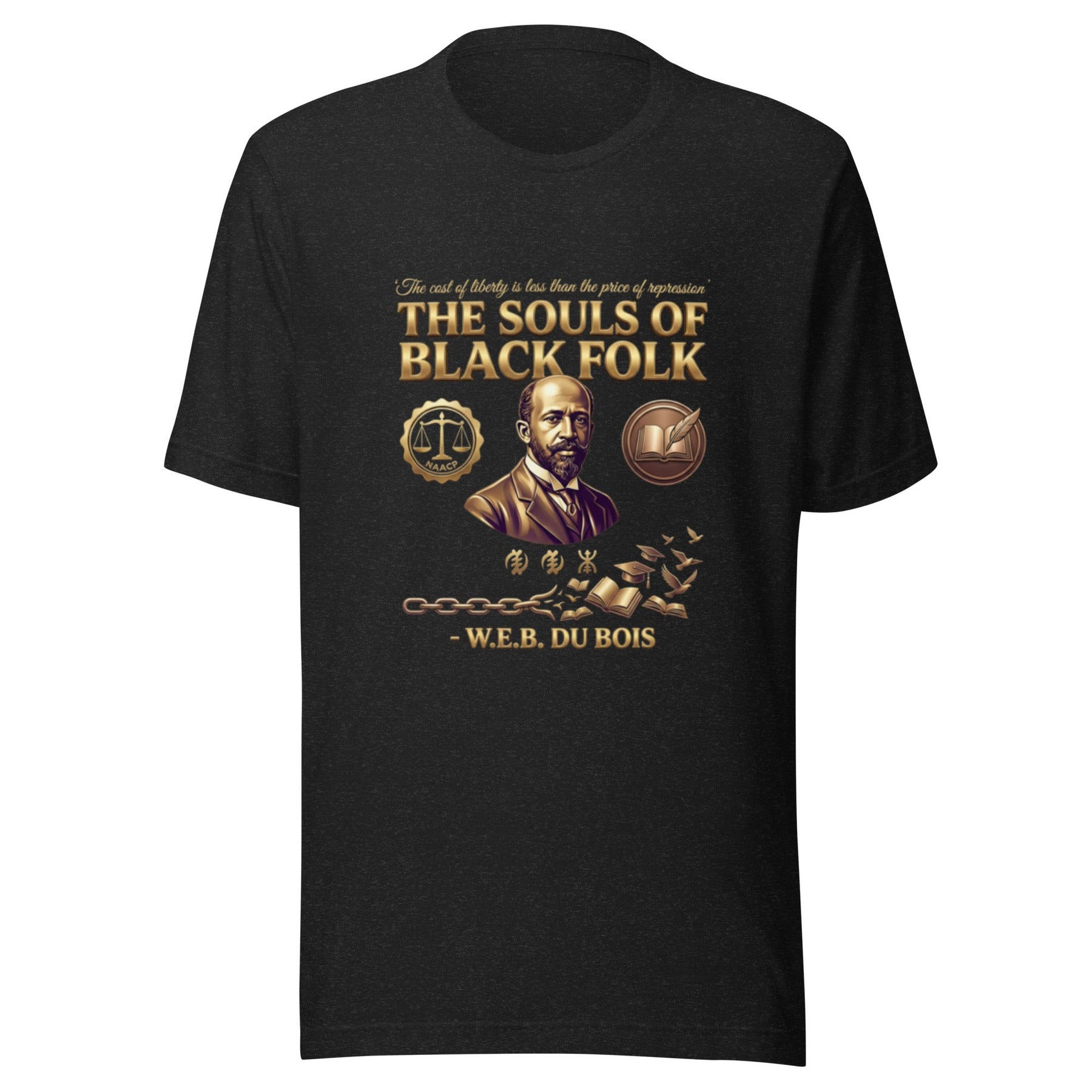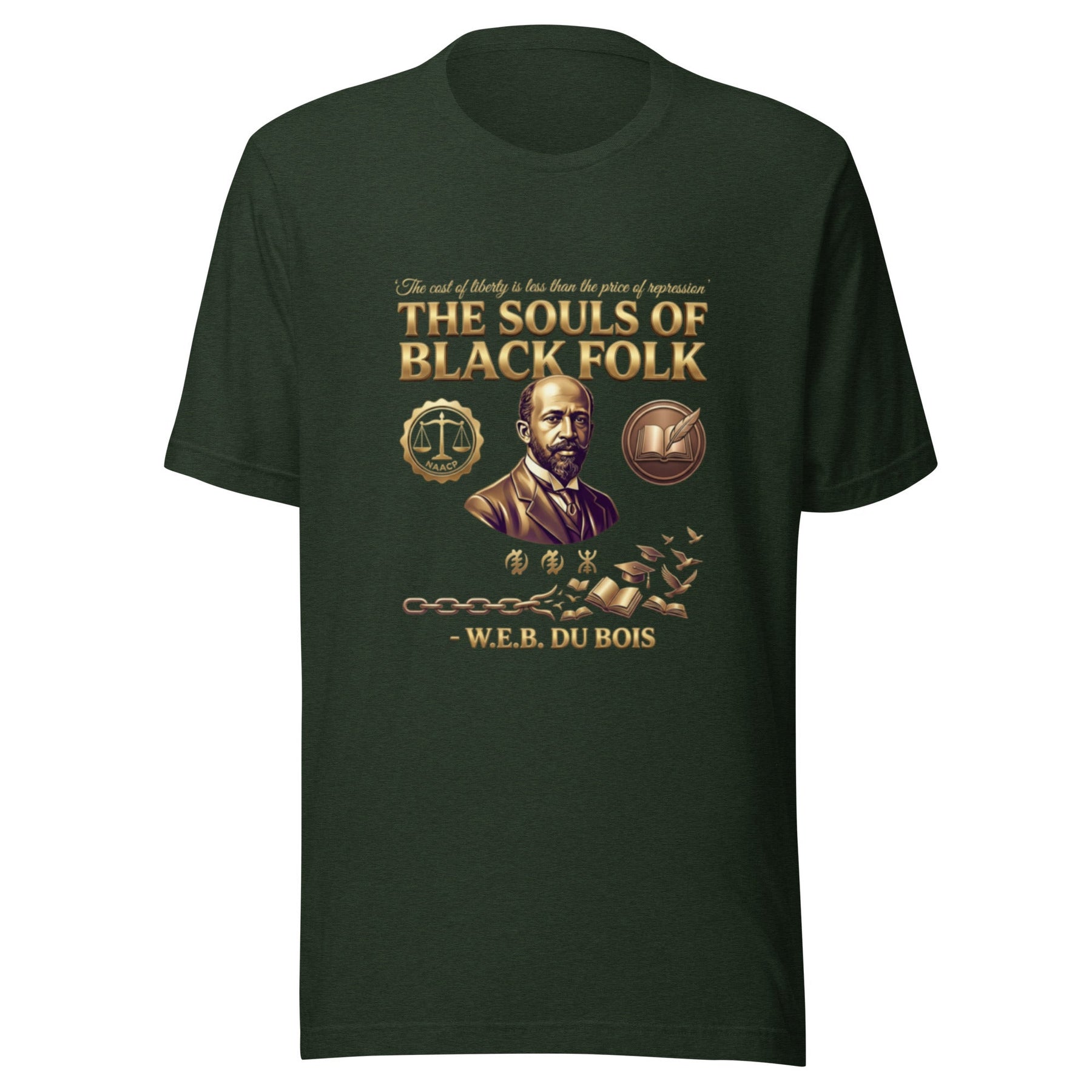Honor the towering intellect of W.E.B. Du Bois, a founder of the NAACP and a foundational scholar of Black life. This design is inspired by his seminal work, The Souls of Black Folk, and his concept of "double-consciousness." The scales of justice and the book represent his life's work fighting for equality through scholarship and activism. Wear this as a tribute to the mind that shaped our understanding of race and freedom for over a century