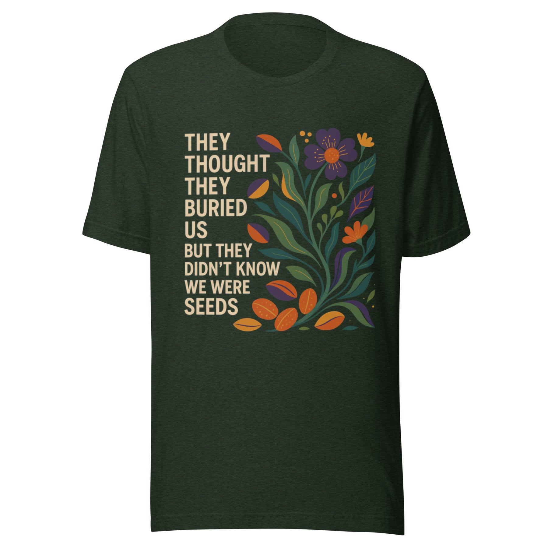 A powerful reminder that adversity doesn't define us—it transforms us. This striking abstract illustration brings to life the timeless quote: "They thought they buried us, but they didn't know we were seeds."